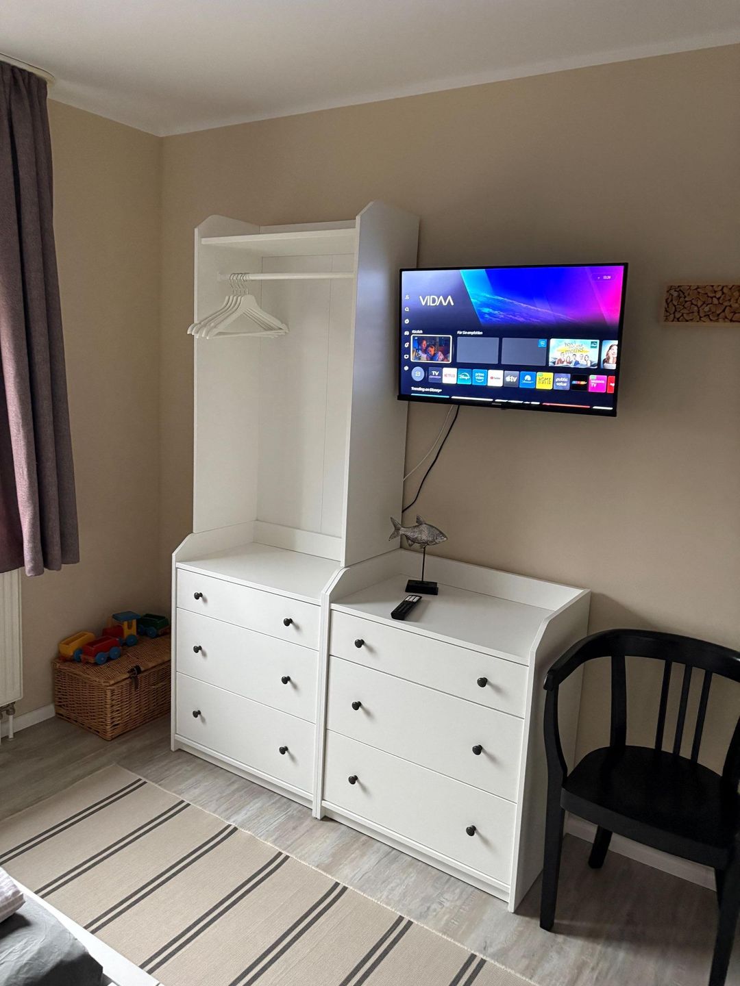 Im Badezimmer finden Sie eine Kombination aus Dusche und Badewanne vor, die sowohl für eine schnelle Erfrischung als auch für ein entspannendes Bad geeignet ist. Zusätzlich gibt es ein separates Gäste-WC. Ein Haartrockner ist ebenfalls vorhanden. Für den täglichen Komfort sind eigene Waschmaschine, Trockner, Bügeleisen, Bügelbrett, Wäscheständer und Staubsauger inklusive, so dass auch längere Aufenthalte unkompliziert gestaltet werden können.